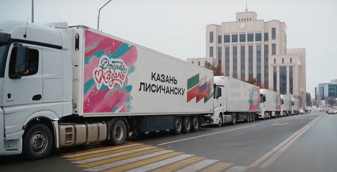 Гуманитарка? Регулярная, как утренний кофе: одежда, рюкзаки для школьников, даже 140 тонн помощи от "Единой России" через Татарстан – вода, самосвалы, стройматериалы.