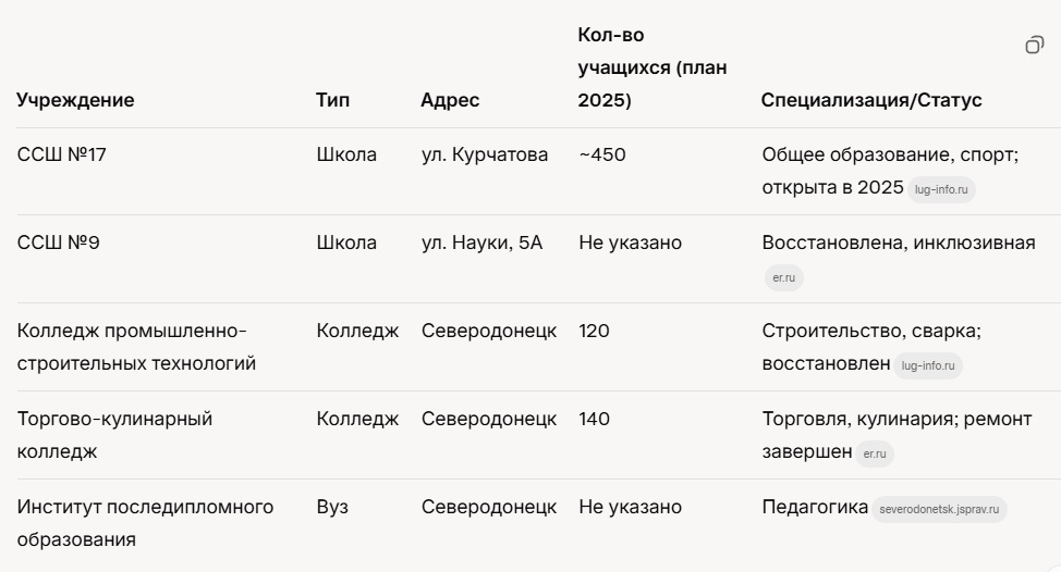 Последние новости Северодонецка за август 2025 года: планы по реконструкции города с учетом исторических особенностей, включая восстановление зданий и создание зеленых зон, открытие обновленной школы для местных жителей,