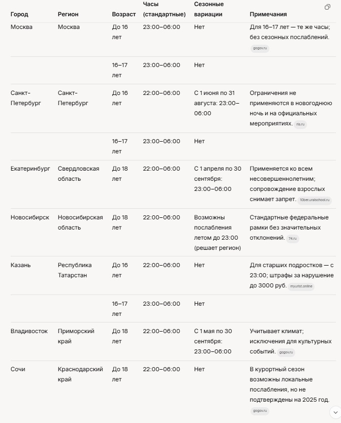 Комендантский час для несовершеннолетних в России в 2025 году.